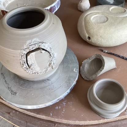 - Coller a la barbotine les pièces ensemble et les lisser
