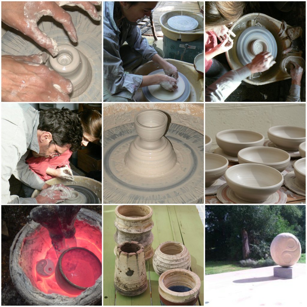 A l’atelier c’est le travail avec l’élément terre qui est mis a l’honneur. Plus particulièrement avec un tour a poteries.